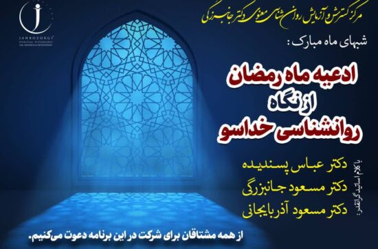 in Life Ramadan Self-Improvement Spirituality on February 21, 2026 February 21, 2026 Share Facebook Twitter Pinterest Email 0 3 Views مرکز گسترش و آزمایش روانشناسی معنوی خداسو دکتر جانبزرگی برگزار میکند: 📍جلسات شبانه در ماه مبارک رمضان با موضوعادعیه ماه رمضان از نگاه روانشناسی خداسو 🎙 با سخنرانی اساتید گرانقدر:دکتر… Read More