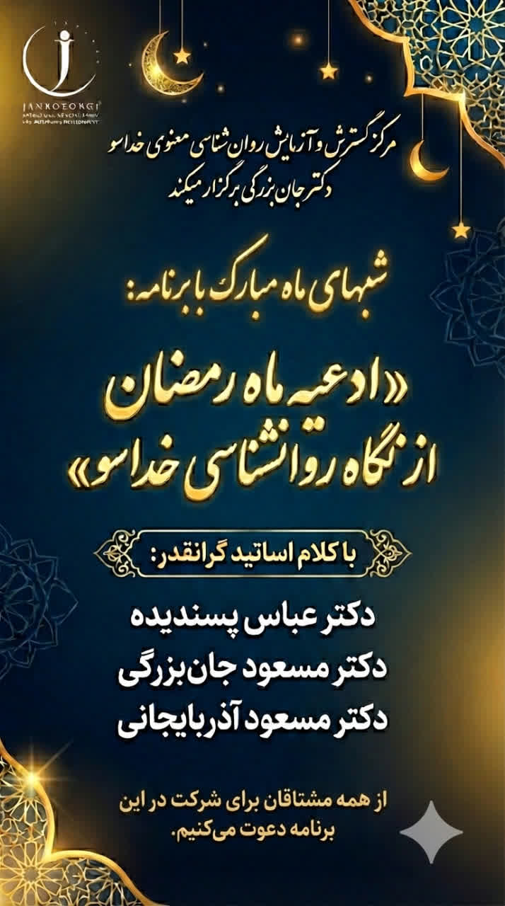 مرکز گسترش و آزمایش روانشناسی معنوی خداسو دکتر جانبزرگی برگزار میکند: